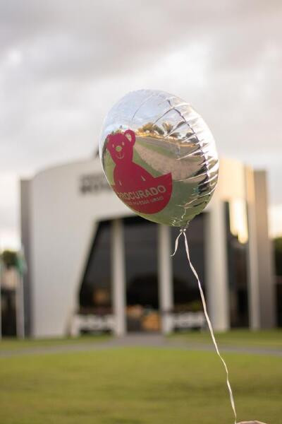 Balões com ursos e mensagem de “Procurado” são vistos por toda cidade